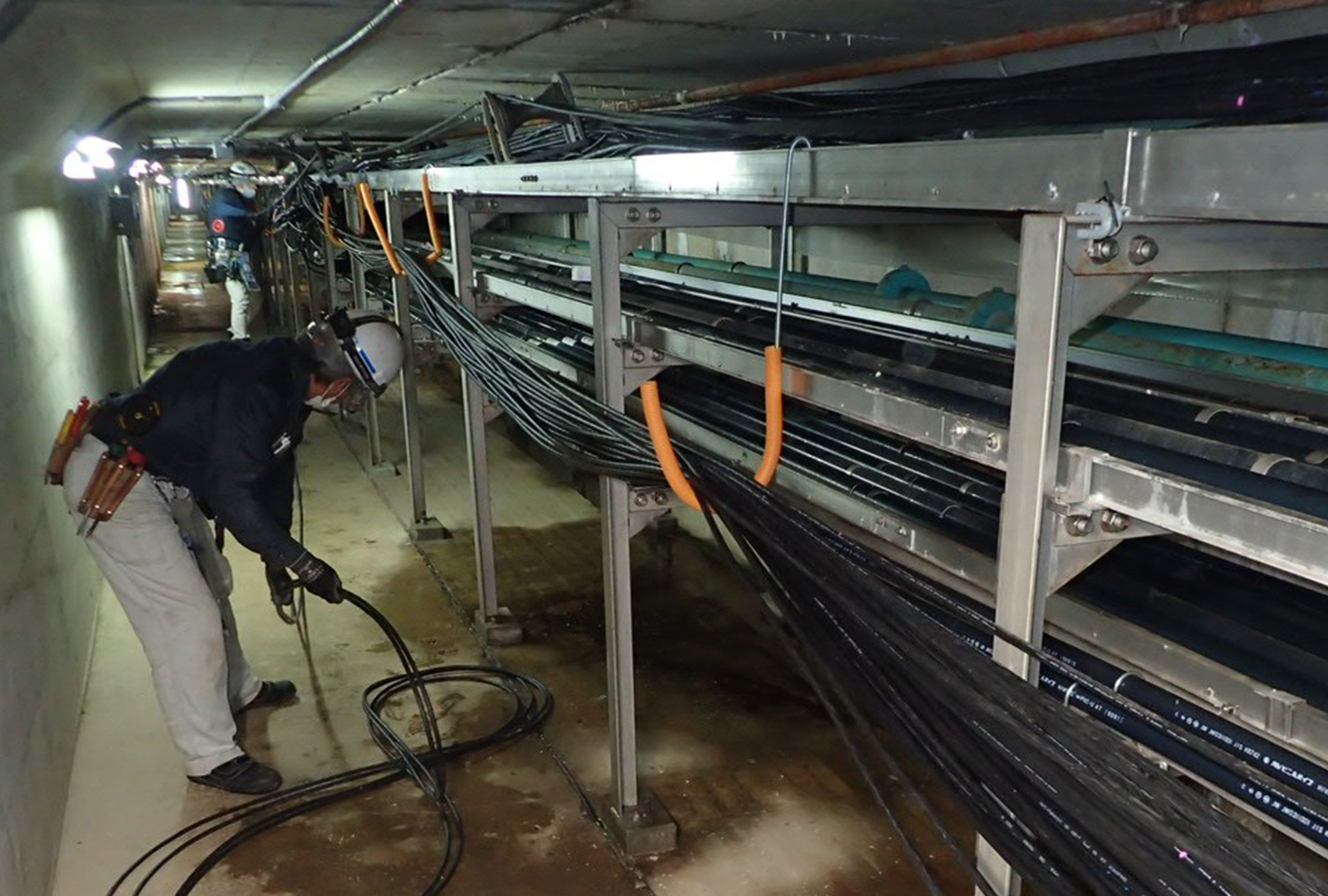 機械設備等のポンプ、バルブ等の動力・制御系統の電路敷設、ケーブル通線・結線作業や導通・絶縁抵抗試験、接地抵抗試験等